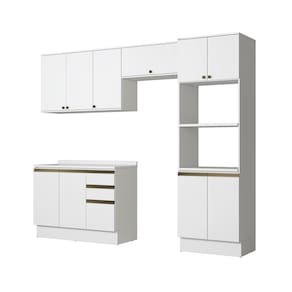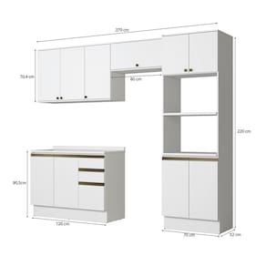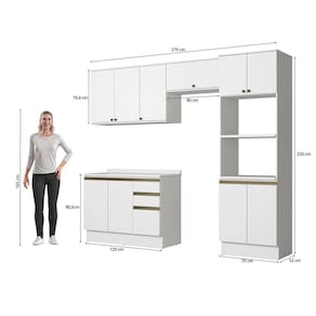 Completo e versátil, perfeito para todos os espaços, o combo une o balcão de pia, kit forno e microondas, além do aéreo de pia e o basculante, que juntos, irão transformar seu ambiente e garantir ainda mais praticidade na organização e preparo de receitas. Acompanhado do tampo, o balcão pode ser montado com cuba ou pedra, contando com amplo espaço para organizar louças e mantimentos.