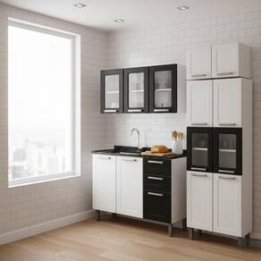 Perfeito para quem busca um ambiente moderno, elegante e de alta resistência, o Conjunto Múltipla Bertolini eleva a beleza da cozinha com seu acabamento preto/branco e design contemporâneo, entregando o melhor custo-benefício em móveis de aço.