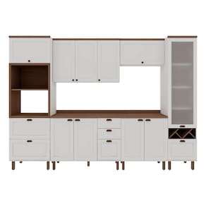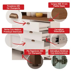 Imagina ter uma cozinha linda, prática e cheia de estilo? O Armário de Cozinha Completo Genialflex Ayla Branco é aquele conjunto que vai deixar seu espaço super organizado sem perder o charme. Ele é todo em MDF, com tampo amadeirado robusto, puxadores e pés na cor champanhe e portas no estilo provençal americano que dão um toque diferenciado. Tem lugar pra forno, micro-ondas, gavetas que deslizam fácil, prateleiras super resistentes e até uma adeguinha pra suas garrafas favoritas. É o combo perfeito pra quem quer unir beleza, qualidade e funcionalidade na cozinha de um jeito simples e moderno!