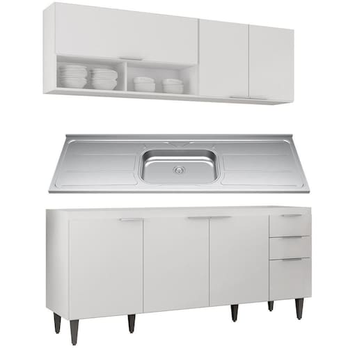 Conteúdo da Embalagem: 1 Armário Aéreo 100cm, 1 Armário Aéreo 80cm, 1 Balcão, 1 Pia.