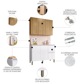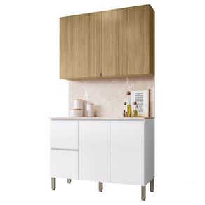 Com o Armário de Cozinha CP01 e Tampo 120cm Minsk K02 Branco/Freijó, da Mpozenato, sua casa fica mais bonita, organizada e cheia de estilo!