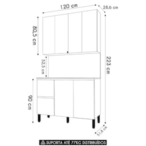 Peso Suportado Distribuído: Balcão:43 Kg / Armário:24 Kg / Tampo com Painel:10 Kg.