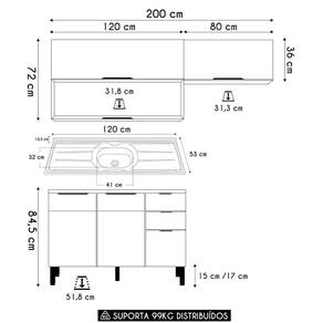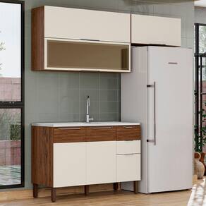 Conteúdo da Embalagem: 1 Armário Aéreo 80cm, 1 Armário Aéreo 120cm, 1 Balcão, 1 Pia.