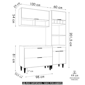 Conteúdo da Embalagem: 1 Armário Aéreo, 1 Balcão, 1 Paneleiro.