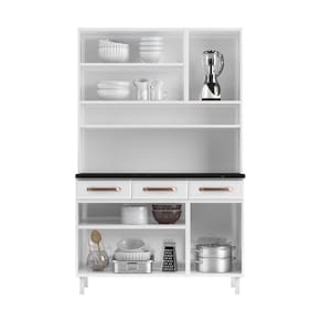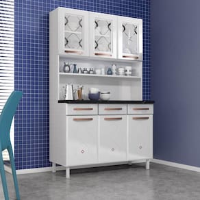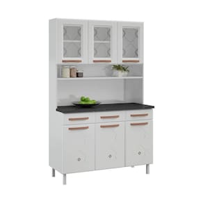 O Armário de Cozinha de Aço Kit Triplo 120cm Regina Multimóveis, é um sonho de consumo para quem deseja trazer mais charme e funcionalidade ao ambiente. Em um único produto, o kit reúne balcão com três gavetas, armário e cristaleira, com espaço disponível de sobra para armazenar utensílios, louças e alimentos de maneira organizada. A modulação possui 03 vidros que, além de serem temperados garantindo total segurança, ainda são serigrafados com design harmônico. Os puxadores e apliques resinados na cor Cobre Fosco agregam beleza e sofisticação. As gavetas do balcão possuem corrediças metálicas, que deslizam suavemente na hora de abrir e fechar. A parte interna da gaveta é fabricada em plástico, material muito resistente e durável, que suporta até 5kg de peso. Fabricada em aço, recebe pintura eletrostática e anticorrosiva, com acabamento brilhoso. O tratamento recebido na pintura garante resistência e durabilidade ao móvel.
