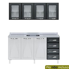 Cor: Cor | Requer montagem: Sim | Materiais do corpo: Aço | Tipo de móvel de cozinha: Cozinha completa Cor: Branco com Preto