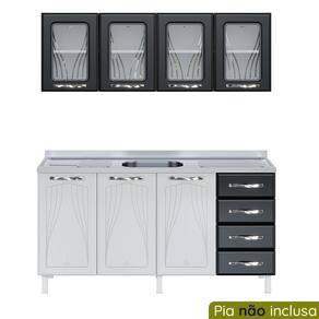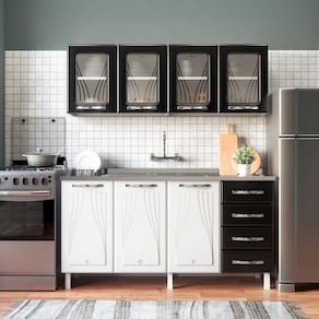 Armário de Cozinha de Aço Star 2 Peças Com Vidro e Balcão Para Pia – Branco/Preto