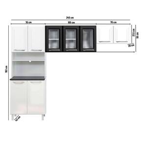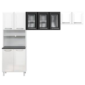 Armário de Cozinha de Aço Telasul Topázio C/ Vidro 3 Peças Branco/Preto - Telasul