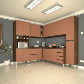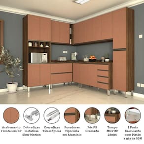 Desenvolvida com materiais de altíssima qualidade, a Cozinha Jade oferece excelente distribuição de espaço interno, dobradiças Slowmotion com amortecedor incorporado para fechamento suave das portas. Puxadores tipo Gola em perfil alumínio na cor Inox com ponteira de proteção. Pés PS cromado com regulagem de altura.