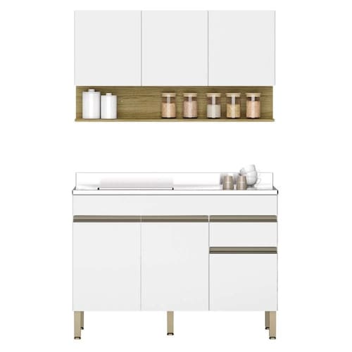 Você quer renovar a sua Cozinha deixando mais moderna e funcional? Então conheça o Armário de Cozinha e Balcão com Pia 120cm Lina Z06 Supremo/Freijó, da Mpozenato!