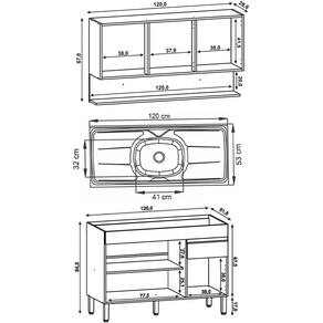 Conteúdo da Embalagem: 1 Balcão, 1 Armário Aéreo, 1 Pia.