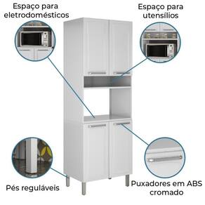 Armário De Cozinha E Paneleiro De Aço 4 Portas Com Nicho Para Microondas Tarsila 0,70m Branco Branco