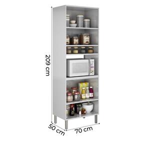 O Paneleiro Duplo Tarsila é ideal para quem procura um produto prático e funcional. Possui 4 portas e 6 prateleiras, que dispõem um amplo espaço para guardar o que você precisa, pés reguláveis que garante firmeza e resistência ao móvel, puxadores metálicos e com espaço para micro-ondas. MODELO: Paneleiro Duplo Microondas Tarsila MARCA: Itatiaia COR: Branco MEDIDAS: [ A ] = 209 cm [ L ] = 70 cm [ P ] = 50 cm DOBRADIÇAS: Metálicas 35 mm PUXADORES: Perfil metálico cromado PORTAS: 4 PRATELEIRAS: 6 PÉS: 4 MATERIAL DOS PÉS: Plástico Regulável PESO: 35,55kg SISTEMA DE MONTAGEM: Parafusos GARANTIA: 12 meses pelo fabricante