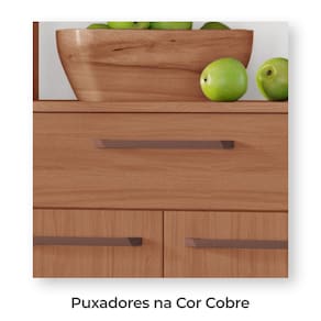 Apresentamos o Armário de Cozinha Icaraí! O Armário Icaraí é funcional e elegante, destacando-se pelos puxadores na cor cobre que conferem um toque sofisticado. Possui uma excelente divisão interna, facilitando a organização. A pintura touch oferece um acabamento moderno e resistente. As corrediças telescópicas garantem suavidade na abertura e fechamento das gavetas, enquanto os pés em PVC asseguram durabilidade. Com 7 portas, é ideal para quem busca praticidade e estilo.