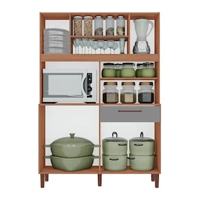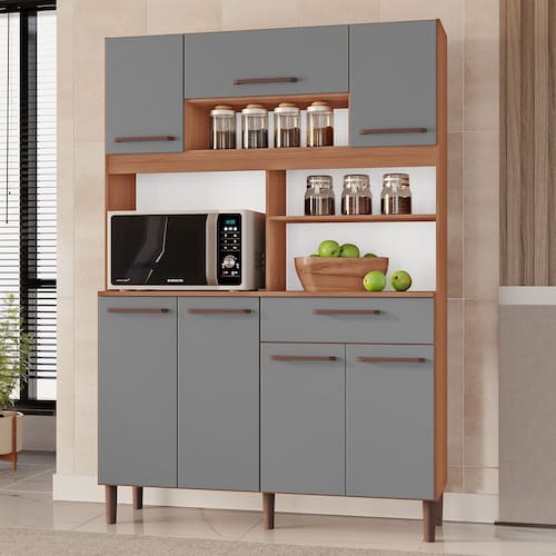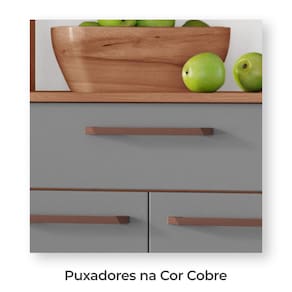 Apresentamos o Armário de Cozinha Icaraí! O Armário Icaraí é funcional e elegante, destacando-se pelos puxadores na cor cobre que conferem um toque sofisticado. Possui uma excelente divisão interna, facilitando a organização. A pintura touch oferece um acabamento moderno e resistente. As corrediças telescópicas garantem suavidade na abertura e fechamento das gavetas, enquanto os pés em PVC asseguram durabilidade. Com 7 portas, é ideal para quem busca praticidade e estilo.