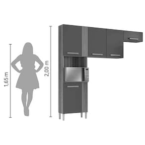 Armário de Cozinha Juma 5 Portas Aramoveis O Armário de Cozinha Juma 5 Portas Aramoveis traz qualidade, elegância, e praticidade para o seu dia a dia. Seu amplo espaço interno é ideal para organizar tudo que precisa da maneira que desejar! Composta por um paneleiro com nicho, armário aéreo, armário de geladeira, e espaço para micro-ondas. Com muita funcionalidade, esse modelo vai deixar sua cozinha ainda mais bonita. Aproveite!\nMEDIDAS\nAltura 200cm\nLargura 210cm\nProfundidade 36cm\nCARACTERÍSTICAS\nFabricante Aramoveis\nModelo Armário de Cozinha Juma 5 Portas\nGarantia 3 meses\nTipo de produto Armário de Cozinha\nAmbiente Cozinha\nEstrutura MDP\nQuantidade de Portas 05\nQuantidade de Gavetas Não Possui\nQuantidade de Nichos 01\nQuantidade de Pés 04\nTipo de Dobradiça Metálica\nTipo de Porta Bater, Basculante\nTipo de Corrediça Não Possui\nAcabamento Pintura UV\nEstilo Moderno\nMaterial Puxador Madeira\nNecessita Montagem Sim\nAcompanha Manual de Instalação Sim\nINFORMAÇÕES IMPORTANTES\nObjetos decorativos que porventura apareçam na foto, não acompanham o produto. Não nos responsabilizamos pela montagem/instalação dos produtos.\nMontagens, desmontagens e instalações são responsabilidades do cliente. Indicamos que contrate uma empresa de montagem ou um montador de sua confiança.\nAlém disso, favor verificar se os pés e acessórios estão dentro do forro inferior do produto. Em suma, todas as informações divulgadas sobre o produto são de responsabilidade do Fabricante.\nAs cores do produto podem variar de acordo com o seu monitor, a iluminação do ambiente em que você está e até mesmo a sua percepção visual. Além da cor, pequenos detalhes e acabamentos podem não ficar evidentes na foto, por isso as imagens são meramente ilustrativas