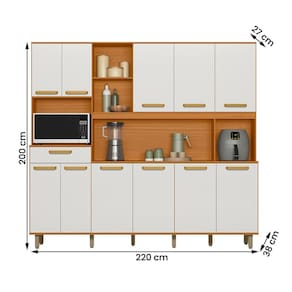 Com estrutura resistente em MDP, 11 portas e 1 gaveta com corrediças telescópicas, ele oferece amplo espaço para guardar utensílios e mantimentos.