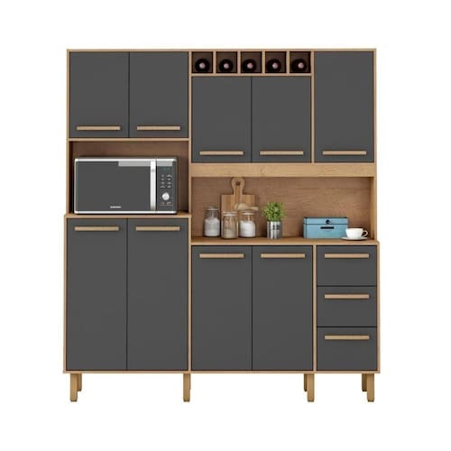Vantagens do Armário LetíciaEspaço de sobra: com 9 portas, você consegue guardar louças, panelas, mantimentos e utensílios de forma organizada.