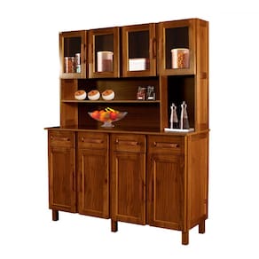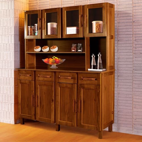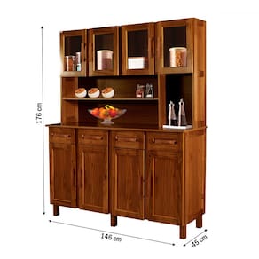 O(a) Armário de Cozinha Maranhão 8 Portas 4 Gavetas com Vidro Ypê - Rodmóveis  é produzido em Pinus e HDF na escala de brilho Semi-Brilho, e possui um grau de dificuldade de montagem: Médio.