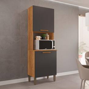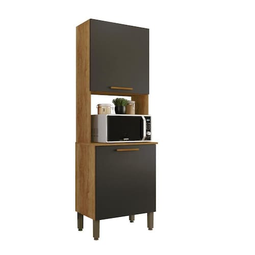 Armário de Cozinha Torre Quente New Valencia MDP 2 Portas Com Pés Cinamomo e Grafite