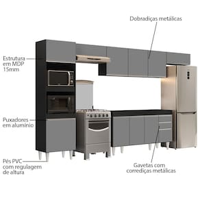 O Armário de Cozinha Modulada 5 Peças CP13 Balcão Preto/Cinza, da Lumil é uma ótima opção para quem busca praticidade e beleza na Cozinha, vem conhecer os detalhes!