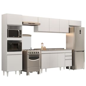 Conteúdo da Embalagem: 1 Balcão 150cm, 1 Armário Aéreo 150cm, 2 Armários Aéreos 70cm, 1 Paneleiro, 1 Pia Inox 150cm.