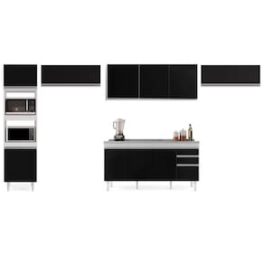 Material: MDP | Origem: | ProductHeight: 202 | Cor: BrancoPreto | Model: CP15 | SupplierSimpleName: Armário de Cozinha Modulada 5 Peças CP15 Balcão com Pia Inox BrancoPreto - Lumil