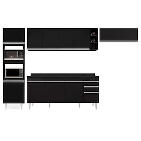 Model: CP17 | Cor: Preto | ProductHeight: 202 | Material: MDP | SupplierSimpleName: Armário de Cozinha Modulada 5 Peças CP17 Balcão com Tampo Preto - Lumil | Origem: