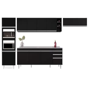 Origem: | ProductHeight: 202 | Material: MDP | Model: CP18 | Cor: Preto | SupplierSimpleName: Armário de Cozinha Modulada 5 Peças CP18 Balcão com Pia Inox Preto - Lumil