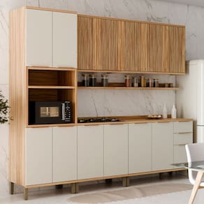 O(a) Armário de Cozinha Modulada com Balcão e Tampo 13 Portas 3 Gavetas Nice Fresado com Prateleira 100% Mdf Amêndoa/Off White - Pnr Móveis é produzido em 100% MDF na escala de brilho Semi-Brilho, e possui um grau de dificuldade de montagem: Médio.