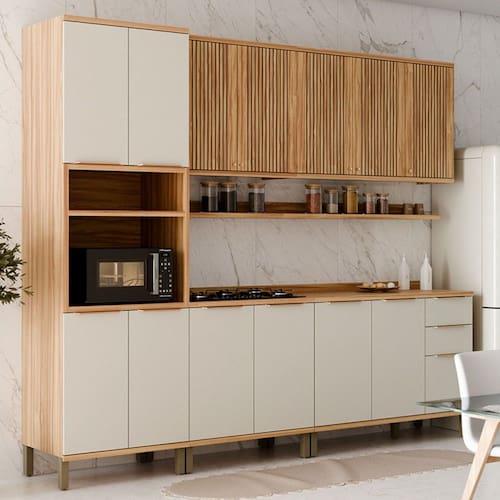 - Acompanha: 1 Armário de Cozinha, 1 Balcão, 1 Tampo, Kit Ferragens e Manual de Montagem