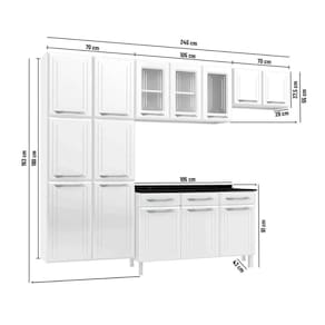 Altura: 193cm | Largura: 245cm | Profundidade: 43cm (Balcão) - 29cm (Aéreos)