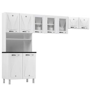 - Tampo em MDP 25mm com acabamento BP (suporta até 30kg): ideal para apoio de utensílios ou eletrodomésticos.
