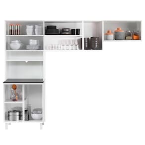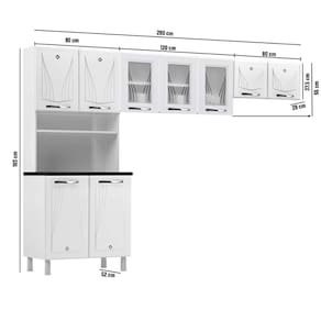 Diferenciais: - Produzido em aço com acabamento brilhante em pintura eletrostática antiferrugem: garante maior durabilidade e resistência. - 3 módulos individuais: permitem a montagem de acordo com a disposição do seu ambiente. - Possui 9 portas (3 delas com vidros 3mm temperados e serigrafados): amplo espaço interno para organização. - Nicho externo perfeito para temperos, itens decorativos ou objetos de uso frequente. - Tampo em MDP 25mm com acabamento BP (suporta até 30kg): ideal para apoio de utensílios ou eletrodomésticos. - Puxadores em poliestireno com design elegante, que unem beleza e praticidade. - Apliques resinados que adicionam brilho ao móvel, trazendo um design moderno e elegante. - Pés com regulagem de altura para melhor nivelamento do móvel. - Prateleiras internas: ajudam a manter seus itens de cozinha sempre organizados. - Não acompanha balcão.