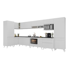 Armário De Cozinha Modulada Completa Canto 409cm Com Balcão Veneza Multimóveis Mp2303 Branco Branco