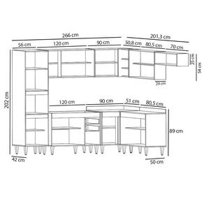 Conteúdo da Embalagem: 1 Balcão 120cm, 1 Armário Aéreo 120cm, 1 Armário Aéreo 70cm, 1 Armário Aéreo 80cm, 1 Balcão 80cm, 1 Balcão de canto, 1 Armário Aéreo de Canto, 1 Paneleiro.