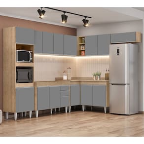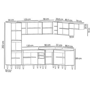 Conteúdo da Embalagem: 1 Balcão 120cm, 1 Armário Aéreo 120cm, 1 Armário Aéreo 70cm, 1 Armário Aéreo 80cm, 1 Balcão 80cm, 1 Balcão de canto, 1 Armário Aéreo de Canto, 1 Paneleiro.