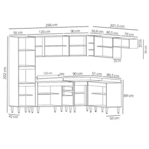 Conteúdo da Embalagem: 1 Balcão 120cm, 1 Tampo 120cm, 1 Armário Aéreo 120cm, 1 Armário Aéreo 70cm, 1 Armário Aéreo 80cm, 1 Balcão 80cm, 1 Balcão de canto, 1 Armário Aéreo de Canto, 1 Paneleiro.