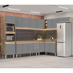 Você está procurando uma Cozinha Modulada que seja prática, bonita e funcional? Então conheça o Armário de Cozinha Modulada de Canto 8 Peças CP07 Balcão Castanho/Cinza, da Lumil e encante-se!