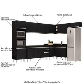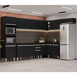 Você está procurando uma Cozinha Modulada que seja prática, bonita e funcional? Então conheça o Armário de Cozinha Modulada de Canto 8 Peças CP07 Balcão Preto, da Lumil e encante-se!