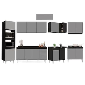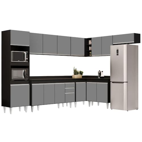 O Armário de Cozinha Modulada de Canto 8 Peças CP08 Balcão com Tampo Preto/Cinza, da Lumil é exatamente o que você está procurando para deixar a sua Cozinha prática e funcional, confira os detalhes!