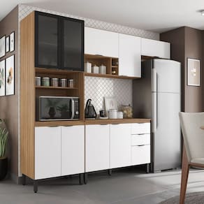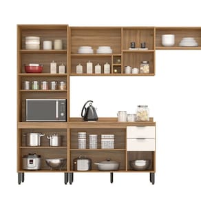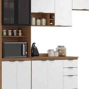 O Armário de Cozinha Modulada Rubi Compacta é a escolha perfeita para quem busca praticidade e design sofisticado. Com 9 portas, 3 gavetas telescópicas e 7 prateleiras, oferece amplo espaço para organização.