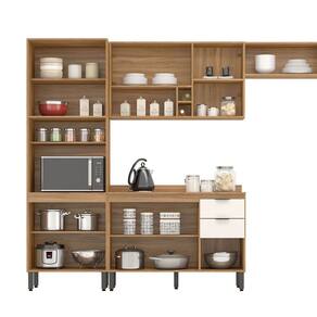 O Armário de Cozinha Modulada Rubi Compacta é a escolha perfeita para quem busca praticidade e design sofisticado. Com 9 portas, 3 gavetas telescópicas e 7 prateleiras, oferece amplo espaço para organização.