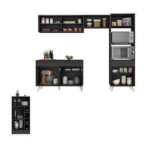 Armário De Cozinha Modulado Com Bancada Americana Multimóveis Mp2209 Preto/branco Preto/branco O Armário de Cozinha Modulado com Bancada Americana Multimóveis MP2209 é produzido em MDP com acabamento acetinado, oferecendo durabilidade e alta qualidade, com cerca 20% de brilho para um toque sofisticado. Com 2 portas de dobradiças, 2 portas de correr em vidro reflecta, 3 portas basculantes e módulo para forno e micro-ondas, a cozinha proporciona amplo espaço de armazenamento. Além disso, conta com espaço para colocação de fogão ou geladeira, deixando sua cozinha ainda mais completa. A gaveta com corrediças metálicas garante leveza no manuseio e permite acomodar utensílios menores. Os pés retrô em polipropileno e os puxadores em ABS adicionam charme ao design. Os tampos do balcão (suporta até 15kg) e da bancada (suporta até 20kg), ambos de 15mm, garantem resistência. Os módulos são individuais, permitindo a montagem de acordo com a disposição do ambiente. Versátil, o balcão possui tampo removível (compatível com pia de 120cm) e compartimento especial para utensílios mais altos. A bancada inclusa neste belo conjunto conta com 1 porta, prateleira interna e adega embutida, permitindo acomodar bebidas e itens mais utilizados no dia a dia, além de poder ser utilizada como divisora de ambientes. Conteúdo da Embalagem: 1 (um) Armário Aéreo 70cm 1 (um) Armário Aéreo com Portas de Vidro 120cm 1 (um) Balcão com Tampo 120cm 1 (um) Armário para Forno e Micro-Ondas 62cm 1 (uma) Bancada/Mesa Manual de Montagem Kit Ferragem