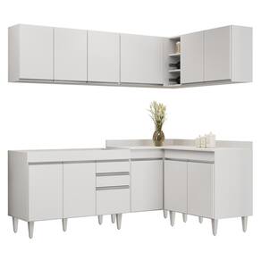 Conteúdo da Embalagem: 1 Balcão 120cm, 1 Armário Aéreo 120cm, 1 Armário Aéreo 80cm, 1 Balcão 80cm, 1 Balcão de canto, 1 Armário Aéreo de Canto.