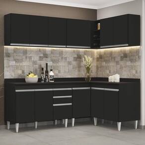 Altura: 202 cm | AssemblyRequired: Sim, sugerimos a contratação do nosso serviço de montagem (para os CEPs em que o serviço está dispon | Color: Preto | ColorFamily: Preto | ColorSimple: Preto | ColorSupplier: Preto | Cor: Preto | Gênero: Unisex | Largura: 341 cm | Manual: Sim | Marca: Mpozenato | Material: MDP | MaterialFamily: MDP | Model: CP 29 | Origem: | OriginCountry: | OriginState: PR | Peso: 162 kg | Peso Suportado: 153 kg | ProductContents: 1 Balcão 120cm, 1 Armário Aéreo 120cm, 1 Armário Aéreo 80cm, 1 Balcão 80cm, 1 Balcão de canto, 1 Arm | ProductHeight: 202 | ProductInstructions: Produto para uso em ambiente interno, nao devendo ficar exposto ao sol, calor e umidade excessivos. | ProductLength: 50 | ProductWarranty: 90 dias após o do produto | ProductWeight: 162 Kg | ProductWidth: 341 | Profundidade: 50 cm | Requere montagem: Sim | SizeDescription: 202 x 341 x 50 cm | SupplierSimpleName: Armário de Cozinha Modulado de Canto 6 Peças CP29 Balcão com Tampo Preto - Lumil | Tipo de : Fabricante
