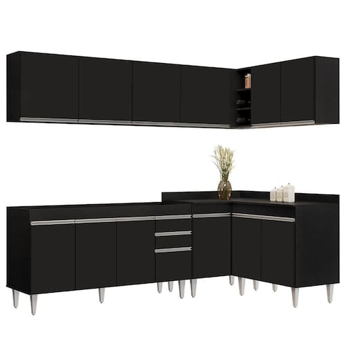Procura uma cozinha prática e funcional?! Então, acaba de encontrar. Com o Armário de Cozinha Modulado de Canto 6 Peças CP31 Balcão sem Tampo Preto, da Lumil, você terá tudo o que precisa ao seu alcance. Composto por 6 peças inteligentemente projetadas, esse armário modulado oferece uma interna perfeita para organizar todos os seus utensílios.