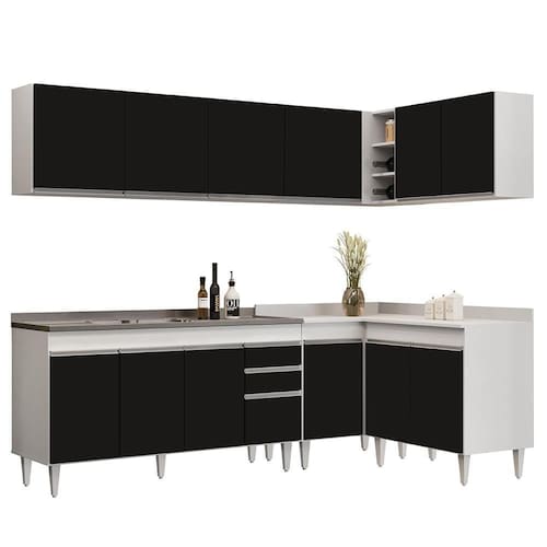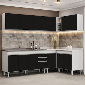 Procura uma cozinha prática e funcional?! Então, acaba de encontrar. Com o Armário de Cozinha Modulado de Canto 6 Peças CP33 com Pia Inox Branco/Preto, da Lumil, você terá tudo o que precisa ao seu alcance. Composto por 6 peças inteligentemente projetadas, esse armário modulado oferece uma interna perfeita para organizar todos os seus utensílios.