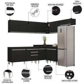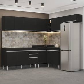 Conteúdo da Embalagem: 1 Balcão 150cm, 1 Armário Aéreo 150cm, 1 Armário Aéreo 70cm, 1 Armário Aéreo 80cm, 1 Balcão 80cm, 1 Balcão de canto, 1 Armário Aéreo de Canto.