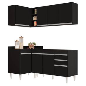 Prático, compacto e funcional, com o Armário de Cozinha Modulado de Canto Direito 4 Peças CP37 Balcão sem Tampo Preto, da Lumil, você terá tudo o que precisa ao seu alcance, uma vez que esse armário modulado oferece uma interna perfeita para organizar todos os seus utensílios, pois é composto por 4 peças escolhidas minuciosamente, com balcão para pia, balcão de canto, e dois armários aéreos, sendo um de canto com nicho. Além disso, o acabamento BP confere a esse jogo de cozinha completo uma maior resistência contra riscos e umidade, garantindo sua durabilidade por muito tempo. Já os pés ajustáveis permitem que você nivelar o móvel em qualquer tipo de piso. Para completar, o design contemporâneo dessa cozinha de canto se adapta facilmente a qualquer estilo de decoração, ao passo que a configuração de canto otimiza a circulação no ambiente. Então, aproveite cada centímetro do seu espaço com esse armário de cozinha versátil e funcional. Invista em qualidade e praticidade para sua cozinha hoje mesmo! ESPECIFICAÇÕESDimensões do Produto: Largura: 170,8 x 90 cm. Altura: 202 cm. Profundidade: Superior: 29 cm / Inferior: 51 cm. Peso Total: 108 Kg. **NÃO ACOMPANHA PIA INOX. Outras medidas: (Largura x Altura x Profundidade): Balcão Gabinete 120cm Michigan: 117 x 83 x 50 cm. Balcão de Canto Denver: 90 x 89 x 51 cm. Armário Aéreo 120cm Virgínia: 120 x 54 x 29 cm. Armário Aéreo de Canto Austin: 90 x 54 x 50,8 cm. Características do Produto: Material da Estrutura: MDP 15 mm. Material do fundo: MDF 3mm. Peso Suportado: 108 kg distribuídos. Acabamento: Melamina BP. Escala de brilho: Fosco. Possui Tampo: Sim. Possui Pia: Não. Possui Portas: Sim. Material da Porta: MDP. Quantidade de Portas: 8 Portas. Tipo de dobradiças: Metálicas. Tipo de Porta: Convencional. Possui Gavetas: Sim. Material da Gaveta: MDP. Quantidade de Gavetas: 2 Gavetas. Tipo de corrediças: Metálicas. Possui Nichos: Sim. Quantidade de Nichos: 3 Nichos. Tipo de puxador: Alumínio. Possui Pés: Sim. Diferenciais: - Amplo espaço interno. - Puxadores em alumínio. - Design moderno. - Pés Reguláveis em PVC. - Tampo somente no balcão de canto. - Montagem canto direito. Sistema de Montagem: Parafusos e Cavilhas. Manual de Montagem: Sim. Complexidade da Montagem: Alta. Conteúdo da Embalagem: 1 Balcão 120cm, 1 Armário Aéreo 120cm, 1 Balcão de Canto, 1 Armário Aéreo de Canto. Garantia do Fabricante: 90 dias contra defeitos de fabricação. Volumes: 4 Volumes. Montagem: Recomendamos que seja feita por um . Recomendação de Limpeza: Utilize pano levemente úmido. Observações importantes: - Produto para uso residencial em ambiente interno, não devendo ficar exposto diretamente ao sol, calor e umidades excessivas. - Pode haver alguma diferença de tonalidade entre a imagem e o produto real, por conta do tratamento de imagens e a calibração de cores do seu monitor. - As imagens são meramente ilustrativas, não acompanham objetos de decoração e eletrônicos. - Ao receber a mercadoria, o cliente deve verificar as condições da embalagem, caso haja alguma não assine o de . - Montagem, desmontagem e outras instalações serão de responsabilidade do cliente. Não nos responsabilizamos, no ato da , por subir escadas/elevadores ou pelo por guincho em apartamentos. Eventuais despesas são de responsabilidade do comprador. - Confira as dimensões do produto e certifique-se de que passará normalmente por supostos elevadores, portas, escadas e/ou corredores de sua residência.